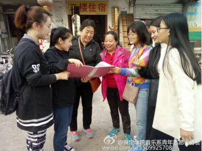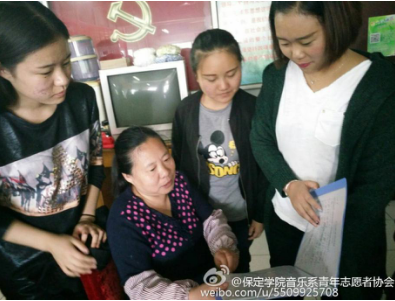 2016年10月14日下午和2016年10月19日下午,15级音乐学一班26名同学来到保定市东关村村委会做志愿活动。为纪念“长征胜利八十周年”,我们一起唱耳熟能详的红歌,叔叔阿姨们积极认真的学习唱谱子。《在太行山上》,旋律婉转激昂,我们一起完成了第一段的唱谱练习。嘹亮的歌声,响彻大街小巷。我认为这次的志愿活动是非常有意义的,学习音乐不再是小众,可以让更多热爱音乐的人们接触并学习。我们会继续这样的志愿活动,帮助到更多需要帮助的人。