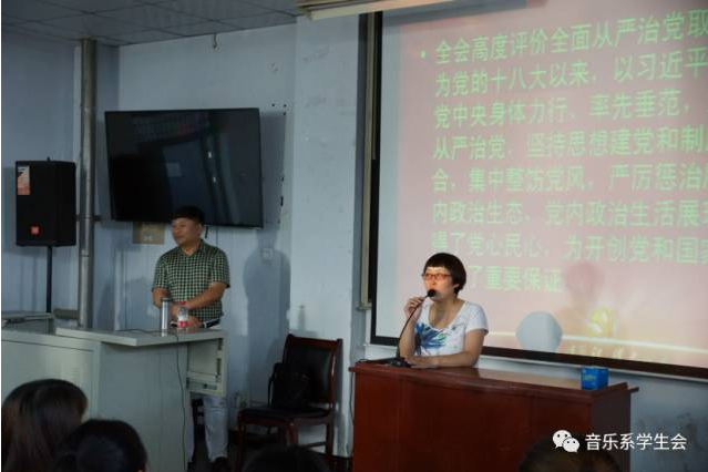 在中国共产党成立96周年,喜迎党的十九大召开之际,音乐系团总支推进“一学一做”教育活动,在6月7日下午特别邀请公司名师、思政教学部主任、保定市宣讲团特邀宣讲员赵云耕老师在音乐系507多媒体教室进行以“苦难与辉煌——中国共产党党史”为主题的讲座。我系员工党员,全体团干部和入党积极分子近220人聆听了这次长达2个多小时的讲座。