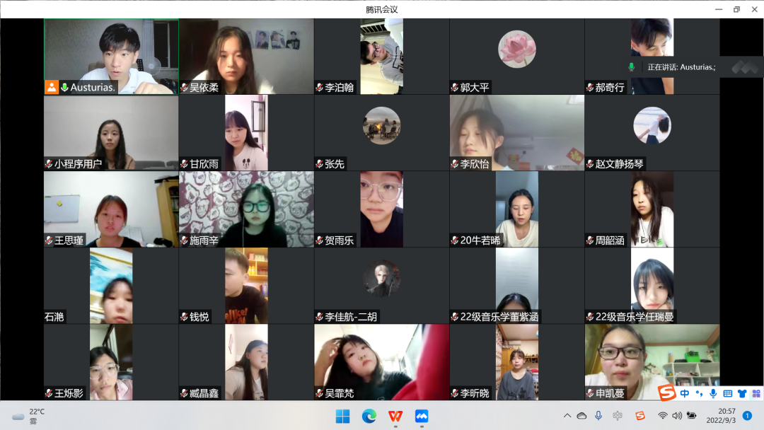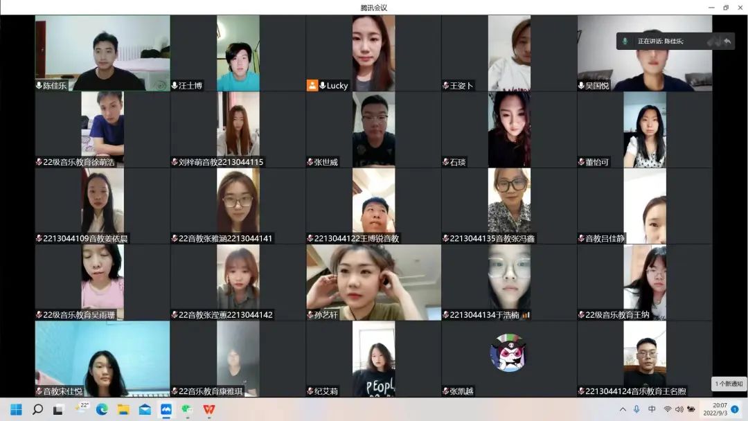 为了做好22级新生班级各项工作,提高小班主任的自身建设,使22级新生更快适应、了解老员工活,做好开学前期准备。tyc122cc太阳成于9月2日21时开展线上2022级小班主任培训会。