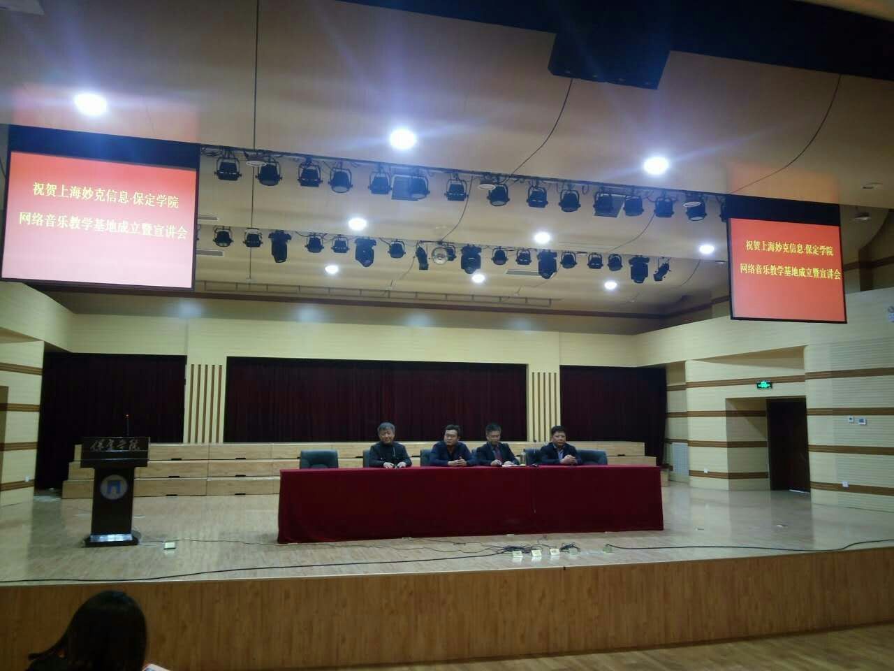 上海妙克信息科技有限公司tyc122cc太阳成集团网络音乐教学实训基地于2017年4月6日正式揭牌启动。出席本次活动的有tyc122cc太阳成集团科研处许明远处长,上海妙克信息技术有限公司姚立嘉先生,tyc122cc太阳成集团音乐系黄晓钟主任,党支部副书记张红玉。启动仪式上各位领导都发表了讲话。上海妙克和tyc122cc太阳成集团的领导对积极响应国家提倡导的互联网+与高校转型都做了各自的深层解读。活动期间tyc122cc太阳成集团音乐系在校员工都聚精会神的聆听,热烈的掌声此起彼伏。