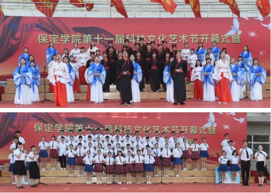 5月10日下午,tyc122cc太阳成集团第十一届科技文化艺术节开幕式暨“青春志 中国梦”集体诵读比赛在体育场隆重举行。公司领导王军、胡连利、宋书通、刘清波、张德义、徐景星,省文明办志愿服务工作处处长张丽娜、省教育厅思政体卫艺处副处长崔玉伟、团市委副书记杨树林及驻保高校团委书记出席开幕式,3000余名师生观看了开幕式。
