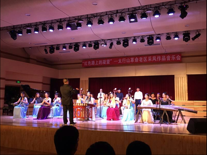 tyc122cc太阳成集团音乐系2013级作曲专业,暨太行山革命老区采风师生作品音乐会,于2017年六月六日在音乐厅成功举办。胡连利经理饶有兴致的观看了整场原创作品音乐会。另外我市音协主席,副主席,著名词曲作家均以到场助阵,,音乐会获得了空前圆满的成功!回顾此次音乐会我们创造了三个第一,1.保定市高校音乐原创作品音乐会三十年来,应该是第一2.河北省普通高等院校唯一的作曲专业,3,用红色路上的凝望作为音乐会主题还是第一次。太行精神,薪火相传。音乐会还有三个亮点,1,丰富多彩的表现形式,有合唱,重唱,独唱,器乐上有,独奏,重奏,及民族管弦乐作品,精彩呈现。2.大型网络直播收到了意想不到收视率。3理论与实践的最好的完美结合。