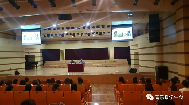 黄晓钟主任介绍了音乐系的发展历史,音乐楼的硬件设施,音乐学舞蹈学专业设置以及合唱团、民乐团、管乐队、舞蹈团的排练演出,系内常规的专业赛事活动,大线条地介绍了音乐系新生学习环境。黄主任还总结了自己老员工活和三十年的教学经验:广泛地加以学习,详细地加以求教,谨慎地加以思考,踏实地加以实践。另外,黄老师用具体的事例告诉大家,培养优良的学风可以总结成三个词:定位、坚持与陪伴。