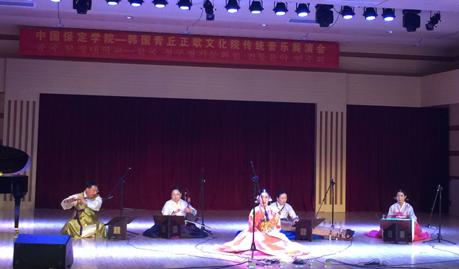 24日下午,中韩传统音乐展演会在音乐厅举行,韩国代表团和公司师生同台献艺,共同展示了传统音乐的魅力。院领导王军、胡连利和音乐系部分师生一起观看了演出。