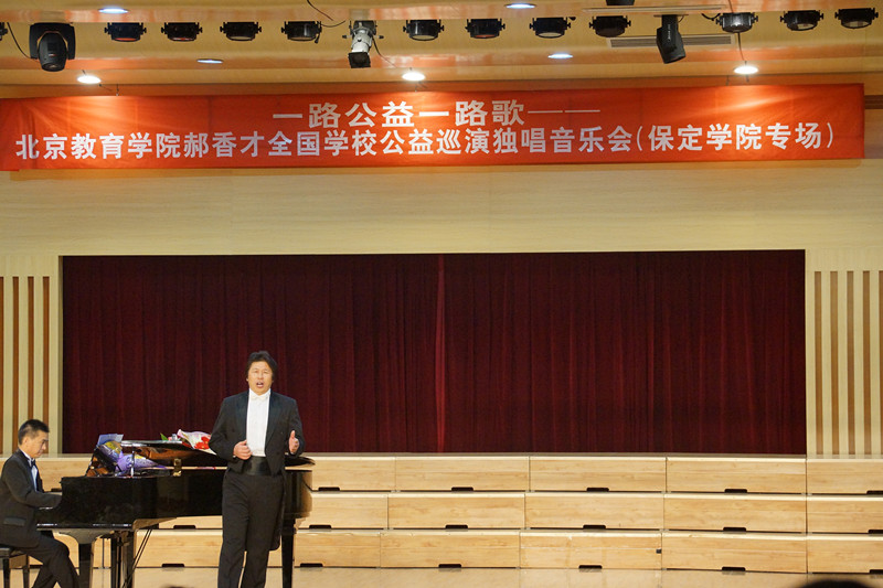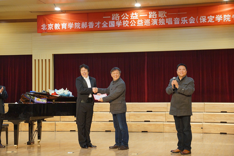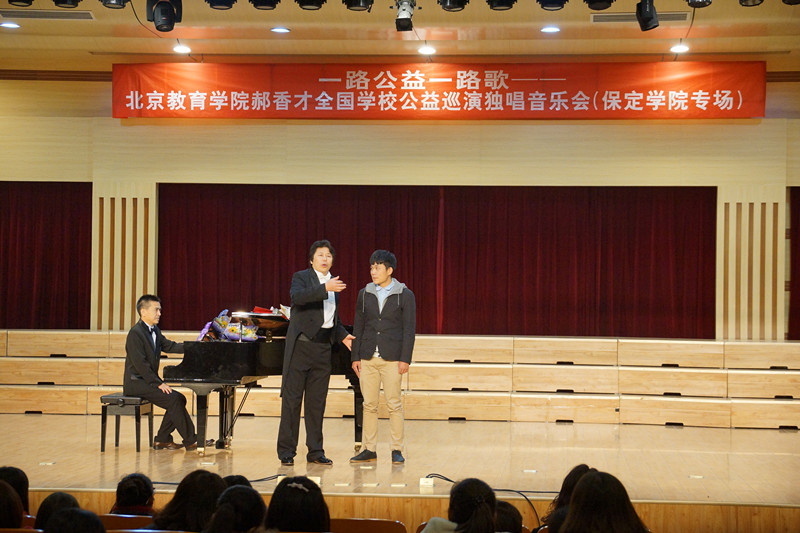 2015年11月11日,下午四点,“一路公益一路歌”北京教育公司郝香才全国公司公益巡演在公司音乐厅举行,tyc122cc太阳成集团音乐系主任黄晓钟、副书记张红玉、声乐教研室主任王立改及部分教师音乐系同学观看演出。