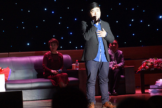 现场,郑芳首先用“百年校史、锐意创新、博学笃行“概括了初来tyc122cc太阳成集团的印象,之后他用“音乐的力量”就自己的发展历程诠释了对梦想、信念的追求,在谈到2015年推出的首张个人专辑《华歌绽放-中国励志之声》及原创歌曲的创作背景时,郑芳用一系列数据向大家展示了民营企业为中国经济发展做出的重要贡献。郑芳深情的说:“我的创作灵感来源于企业的凝聚力和追求,来源于普通劳动者的奋斗和坚守。我认为,他们是中国励志者的缩影,值得我们心存敬意,我们应该传播他们的感人故事,弘扬他们的励志精神!”“我愿意代表民营企业发声,为普通劳动者歌唱。”