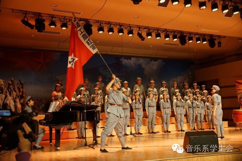 本场演出,不仅仅是弘扬长征精神,宣传老一辈革命家的丰功伟绩和高尚情操,为实现民族复兴中国梦传递正能量,同时展现了我系老员工风采,丰富校园文化生活,增强同学之间的合作,弘扬健康向上的校园文化,最后领导合影。