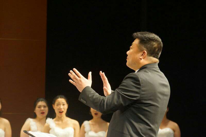 省教育厅崔玉伟处长、公司党委书记宋书记、团委郝学武书记到演出现场为演出师生加油鼓励。演出结束后,音乐系张红玉副书记、王立改副教授与中国农业大学合唱团王怡老师进行了合唱教学的交流。