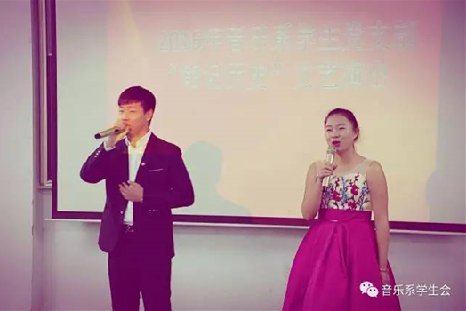 文艺汇演于2016年12月14日下午4点在音乐楼多媒体教室507举行,一首振奋人心,激情澎湃的《红旗飘飘》为文艺汇演拉开帷幕。全系员工党员24人,入党积极分子200余人共聚一堂,以歌唱、舞蹈、朗诵、情景剧、演奏等形式表达活动主题。