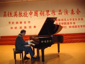 吴先生长期致力于中国钢琴作品的演奏与研究,并一直活跃于钢琴艺术舞台,于1988年举行了首场中国钢琴作品演奏音乐会,并在北京、塞舌尔等地举行了多场演奏会。