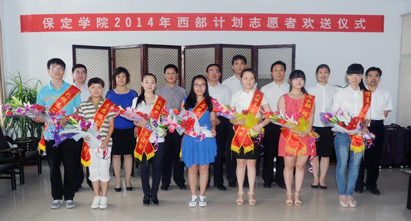 6月26日上午,公司举行2014年西部计划志愿者欢送仪式。院领导王军、崔勇、刘清波、张德义、曹荣、回顺利、高颖、徐景星,相关部门负责同志7位西部计划志愿者送行。我系2014届音乐学专业毕业生、优秀共产党员管亚华同学是今年西部计划志愿者一员。
