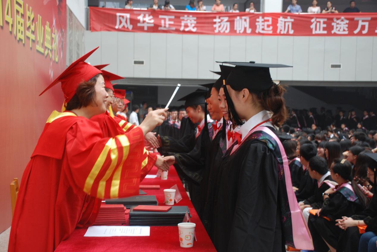 6月26日上午,公司在图书馆大厅隆重举行2014届本科生毕业典礼。院领导为身穿学士服的毕业生颁发了毕业证书和学位证书。今年我系共有159名本科毕业生,1人考取硕士研究生;13人光荣地加入了中国共产党;10人被评为省级优秀毕业生。