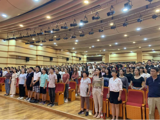 2019年9月8日下午,在雄壮的国歌声中,2019级迎新军训大会在音乐厅进行。公司经理黄晓钟、党总支副书记张红玉、全体辅导员老师及军训工作组师生出席了大会,2019级全体新生参加大会,团总支书记寇荣主持会议。