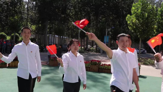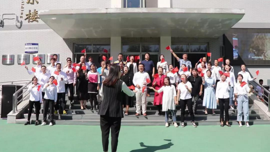 公司党总支组织全院教师和2019级员工开展了一次以“我和我的祖国”为主题的快闪行动。深情的歌唱,满怀感恩的歌唱,激动不已的歌唱,对祖国的热爱,都融入到满心情谊的歌声里。对祖国的祝福,都飘扬在鲜红的五星红旗里。