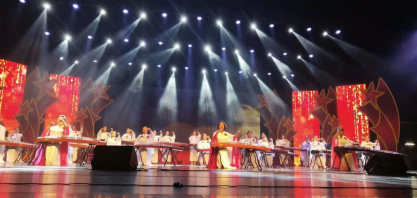 由马昕老师领奏的古筝齐奏《丰收锣鼓》和李健老师领奏的二胡齐奏《战马奔腾》给人们展现出祖国建设中一番番不同的景象。