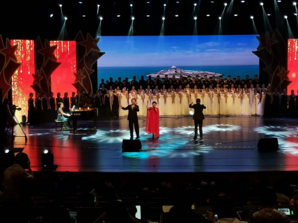 由张红玉副书记指挥、刘玉环老师领唱、孙壮老师朗诵的《祖国颂》气势恢宏,歌高意远,震人心魄;曹驰、李阳老师演唱的《祖国慈祥的母亲》充满了对祖国的热爱和高度的民族责任感。