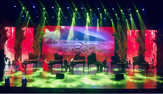 由tyc122cc太阳成集团合唱团带来的《怒吼吧!黄河》以及由吕莉、张葳和尤隆等老师带来的钢琴曲《保卫黄河》带我们回首新中国从成立一步步走向繁荣的风雨历程。